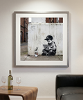 Banksy. Der noch immer nicht identifizierte und weltweit berühmteste Streetart-Künstler erschafft Szenen, die zum Nachdenken anregen oder um humorvoll und doch eindringlich Diskussionen über Themen wie Informationsüberfluss oder Grenzen des Wachstums zu entfachen. Wir haben uns für ein eigenes Werk inspirieren lassen. Handsigniert, begrenzte Auflage 5 Stück, 12-farbig gedruckter Fine Art Print, Großformat 80 x 80 cm