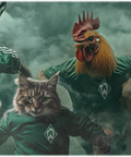 Fotorealistisches Werder Fan-Plakat im Großformat! Die coolsten Bremer Stadtmusikanten als Werder Bremen Stürmer im Fantasy-Style! Die ganze Leidenschaft und Power von Werder Bremen und seinen Fans wird in dieser actiongeladenen Szene spürbar. Das coolste Poster für echte Werderfans. Auch als Postkarte erhältlich!